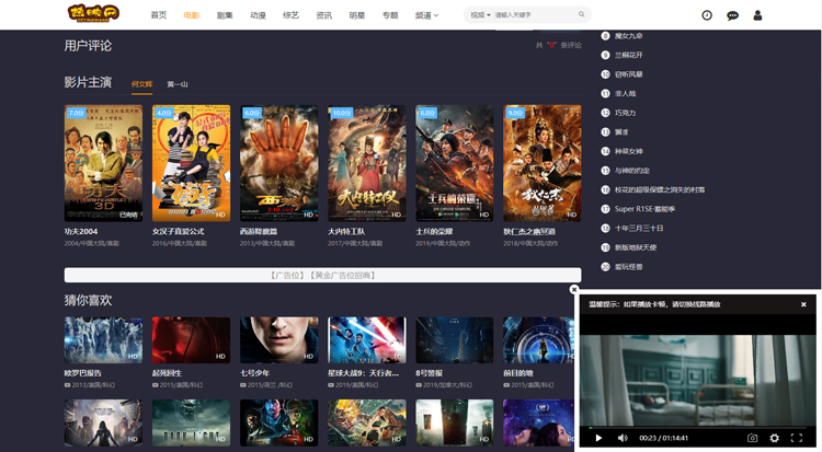 幻灯片显示推荐9的影片,大片推荐显示推荐1、8、9的影片。